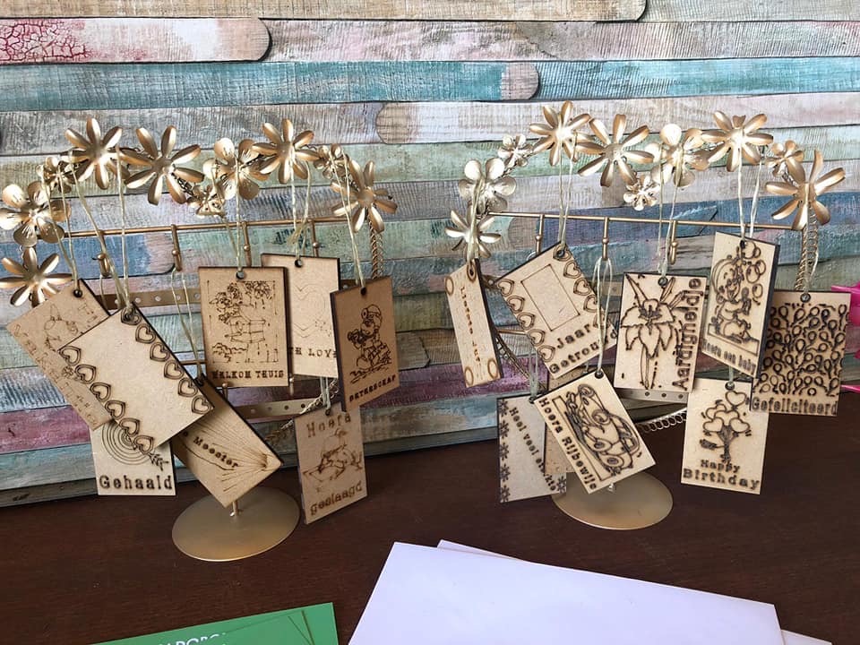 Om het af te maken hebben we voor elke gelegenheid ook mooie stevige houten kaartjes.